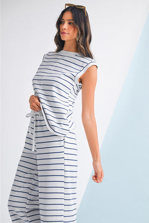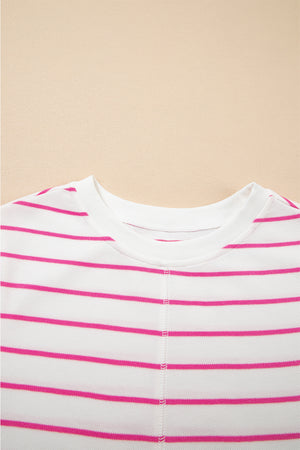 Rose Stripe Casual Tee and Wide Leg Pants Set