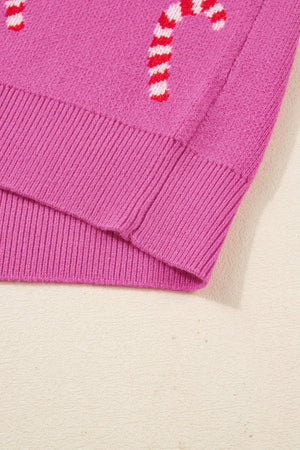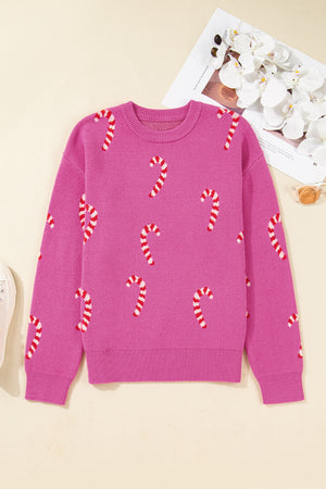 Sachet Pink Christmas Candy Cane Drop Shoulder Sweater