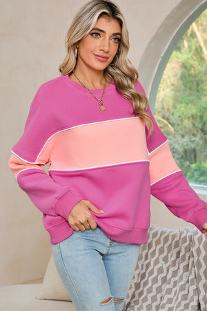 Sachet Pink Colorblock Ribbed Trim Sweatshirt