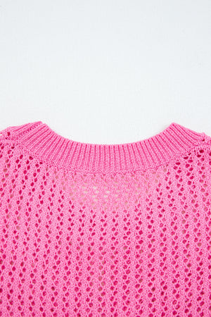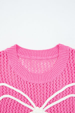 Sachet Pink Sweet Bow Decor Hollow Out Knitted Drop Shoulder Sweater