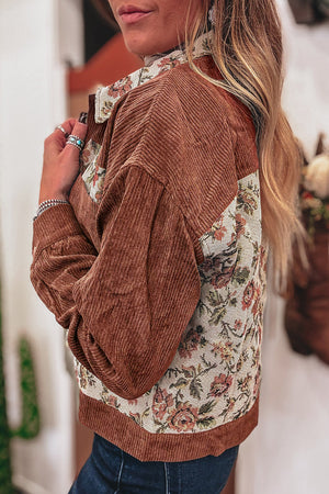 Sage Green Ribbed Retro Floral Patchwork Jacket