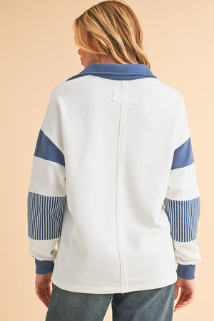 Heim Sail Blue Striped Patchwork Collar Sweatshirt