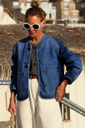 Mit der Sail Blue Vintage Denim Jacket von Hanetes Select entscheidest du dich für zeitlose Qualität und eleganten Streetstyle in einem. Diese Jacke ist das perfekte Statement für Frauen, die Mode lieben, ohne auf Komfort zu verzichten.