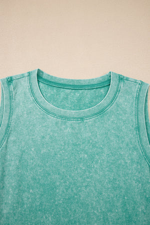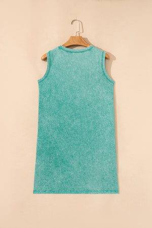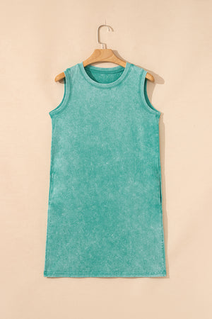 Sea Green Mineral Wash Pocket Tank Mini Dress