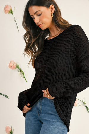 Smoke Gray Crochet Hollow-out Knit Sweater