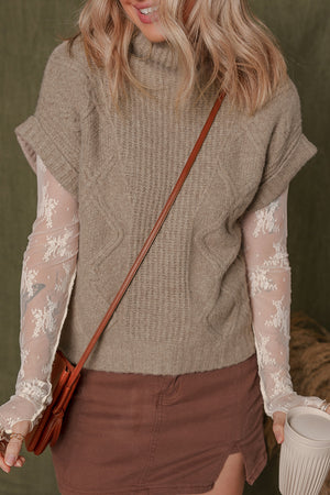 Smoke Gray Textured Knit Mock Neck Short Sleeve Sweater