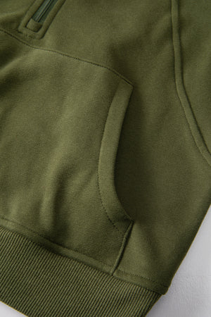 Smoke Green Zip Up Stand Collar Ribbed Thumbhole Sleeve Sweatshirt