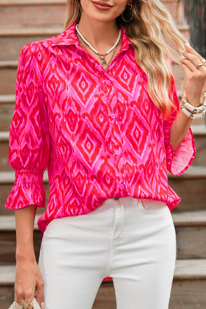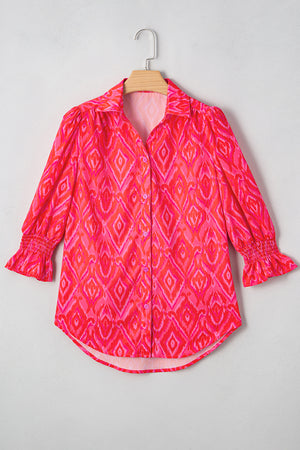 Strawberry Pink Abstract Print Puff Sleeve Shirt