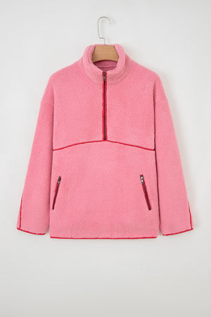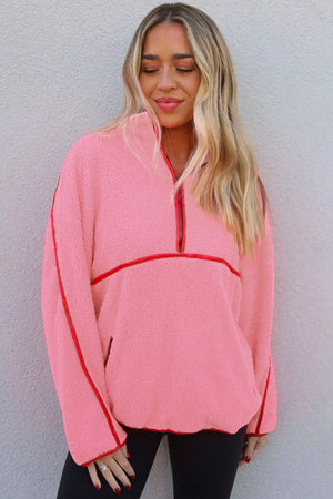 Strawberry Pink Long Sleeve Kangaroo Pocket Sweatshirt