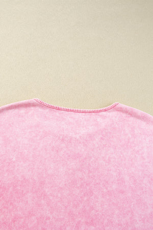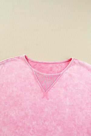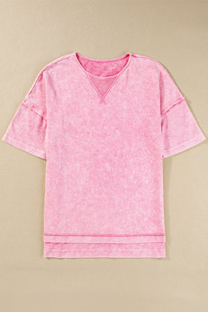 Strawberry Pink Mineral Wash Exposed Seam Drop Shoulder Oversized Tee