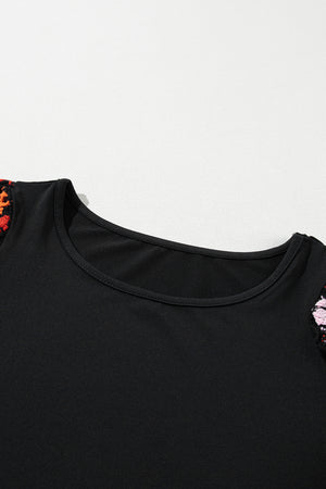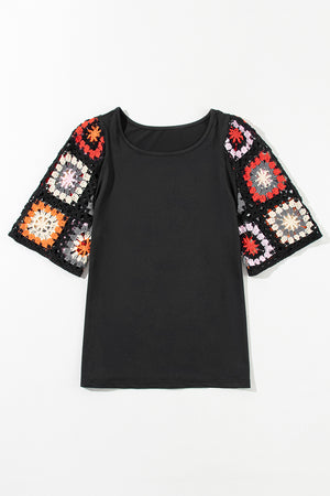 Turquoise Boho Hollowed Floral Crochet Sleeve T Shirt