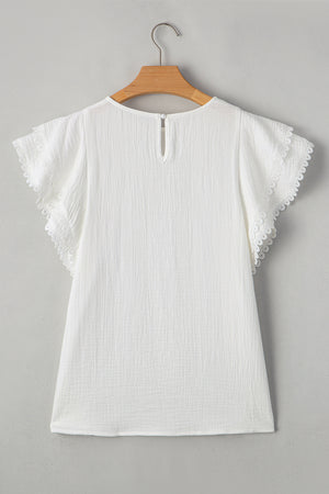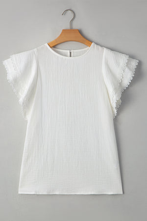 White Crinkled Layered Ruffled Flutter Sleeve Blouse