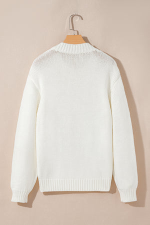 White Embroidered Bow Boots Graphic Drop Shoulder Sweater