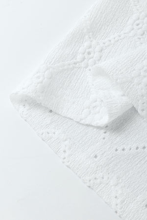 White Embroidered Floral Geometric Button Short Sleeve Top
