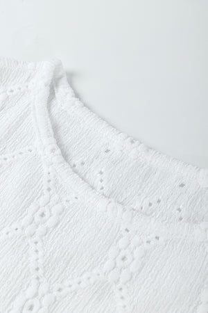 Das White Embroidered Floral Geometric Button Short Sleeve Top ist der perfekte Mix aus femininer Eleganz und modernem Flair. Ein vielseitiges Kleidungsstück, das sowohl im Büro als auch in der Freizeit eine stilvolle Figur macht.