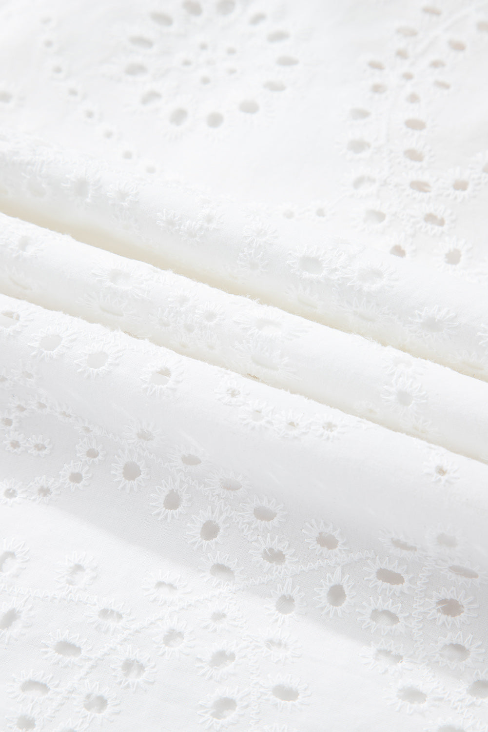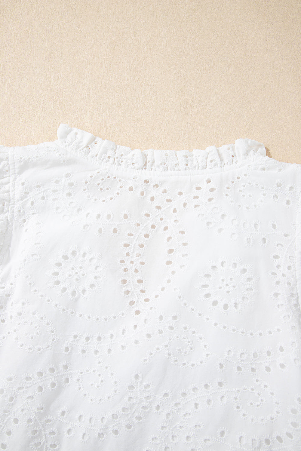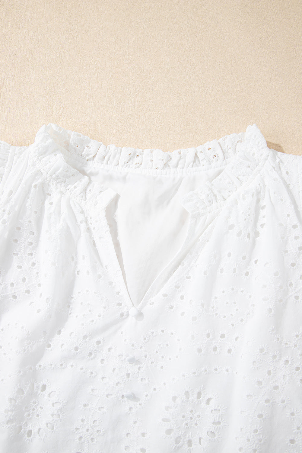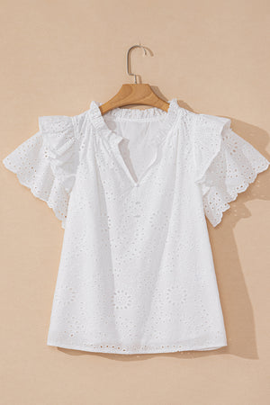 Heim White Eyelet Flutter Sleeve V Neck Blouse