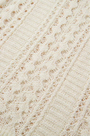 White Hollow Out Knit Bracelet Sleeve Drop Shoulder Sweater