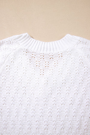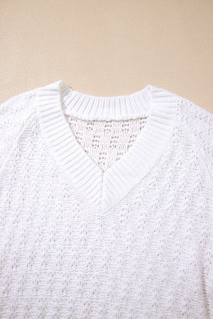 White Plain Knit Ribbed Edge V Neck Loose Sweater