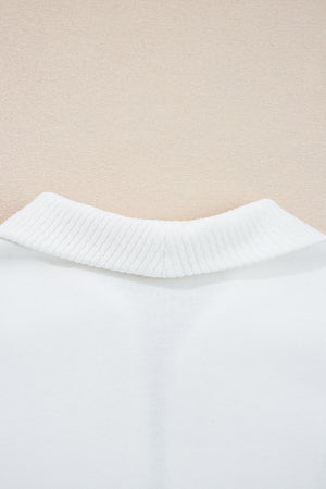 White Ribbed Collar Drop Shoulder Sweatshirt and Shorts Set