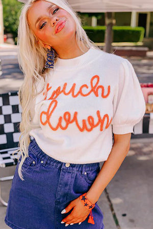 White Touchdown Tinsel Puff Short Sleeve Sweater
