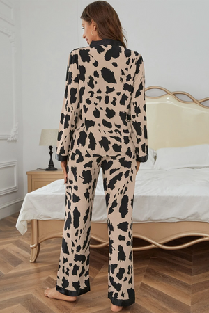 Khaki Cheetah Contrast Trim Loose Fit Two Piece Pants Set